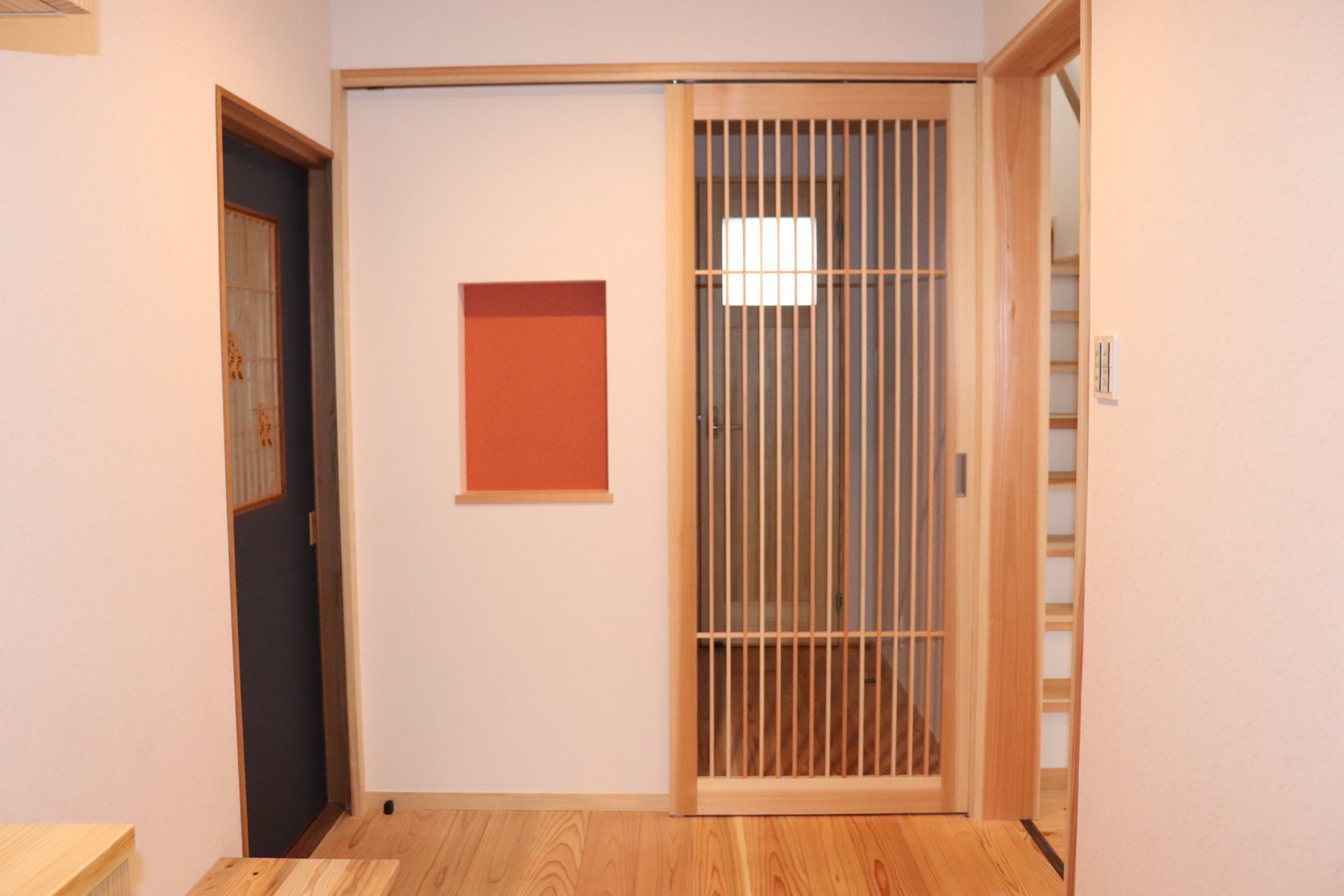 こんにちは。 6月下旬に「板野の家」完成しました。 見学会にお越しくださった皆様ありがとうございました! 「板野の家」は 延べ床面積が約26坪 2階建のお家です。 階段廻りに少し吹抜をとりましたので、1階は広く感じられます。 お施主様のご希望であるノスタルジックな雰囲気になるよう 柱などに濃い目の着色を施しました。 一昨年の1月に、北島で中古住宅のリノベーションをさせていただきましたが、 「板野の家」と同様に柱などを見える部分をつくり木のぬくもりが感じられるお家になりました。 「北島の家」では木には着色を施さ杉の素地のままにしましたので、明るい雰囲気のお家になりました。 柱や床・壁の色で柄っと雰囲気は変わります。 新築やリフォームをお考えの場合、色々なお家の写真などを見てイメージを掴んでおくのは とっても大切です。